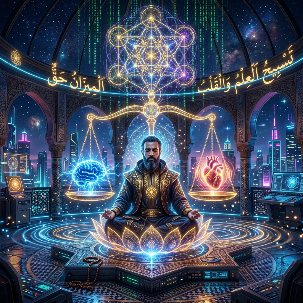 لكنّ البُعدين الأخيرين — K وF — هما اللذان يفصلان الإنسان عن الآلة. المعرفة ليست بيانات. المعرفة هي هضمٌ وجوديّ للبيانات يُنتِج حكمة. والإيمان ليس اعتقاداً أعمى. الإيمان هو الاتّساق القصديّ مع البِنية الأعمق للكون — ما يسمّيه حقل الصفر الكمّيّ، وما نسمّيه نحن: الحضرة الإلهيّة.